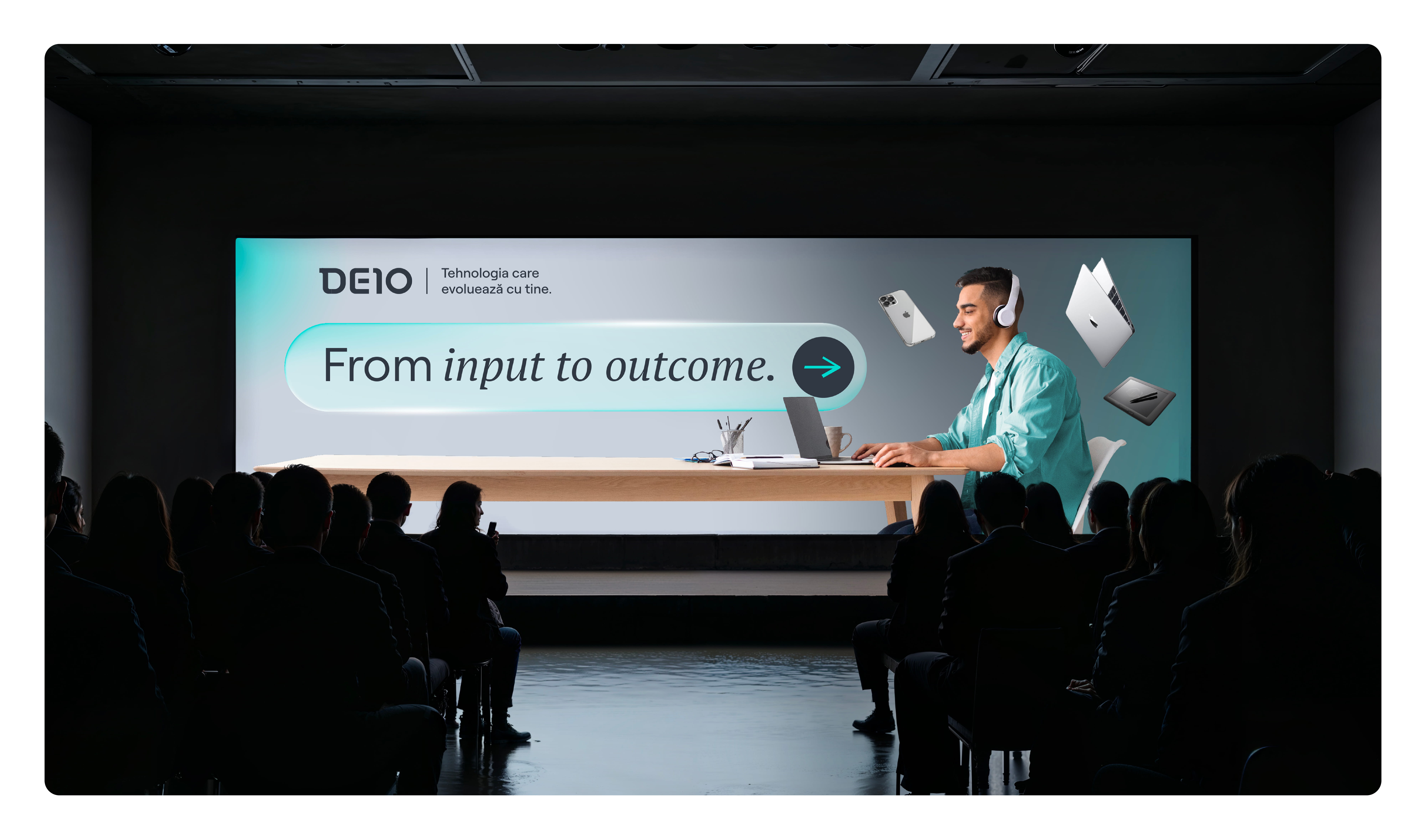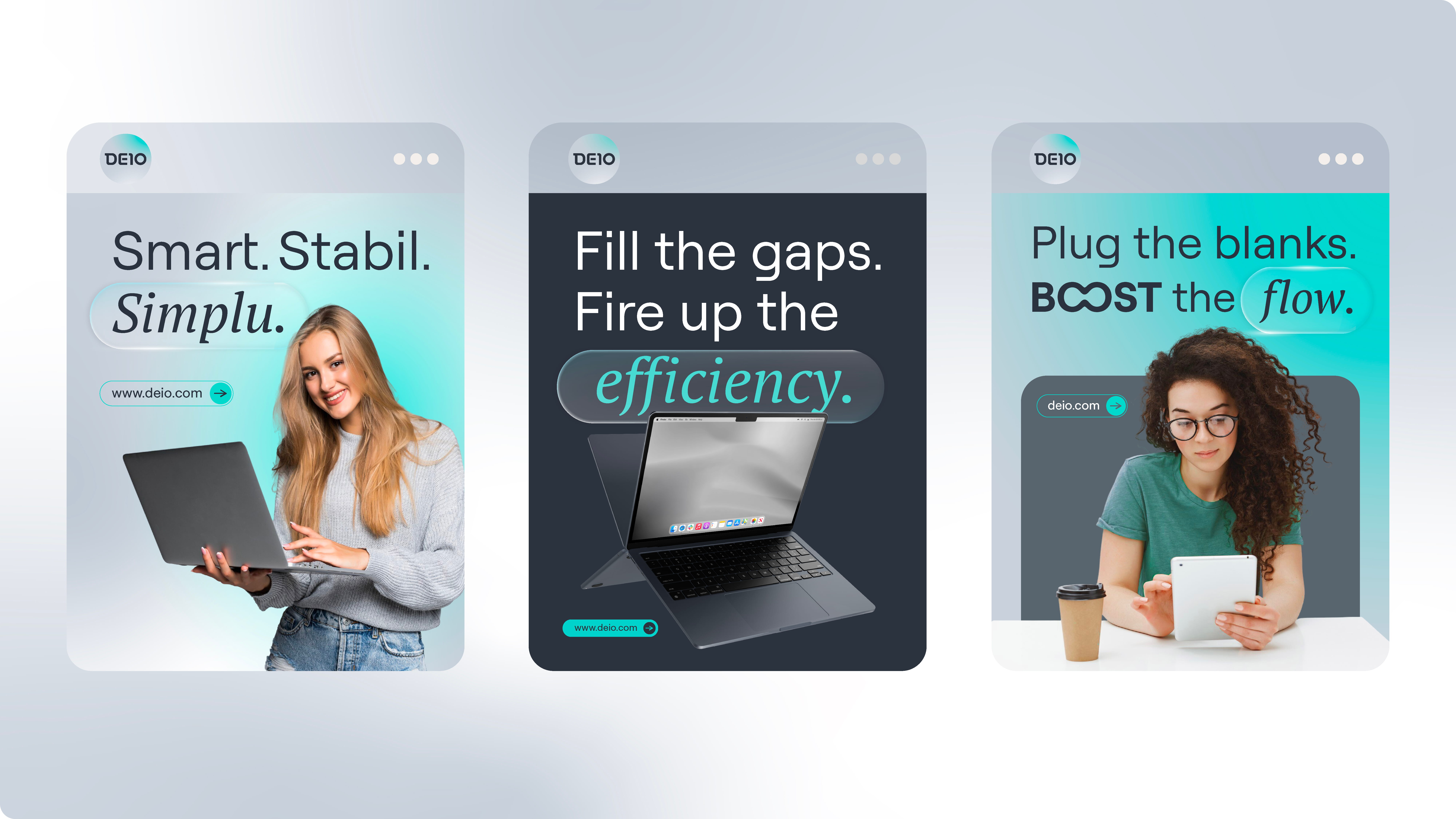 Conceptul vizual comunică clar că DEIO este un brand care simplifică tehnologia, elimină bariere și creează conexiuni, reflectând exact modelul DaaS: adaptare constantă, dar controlată.
