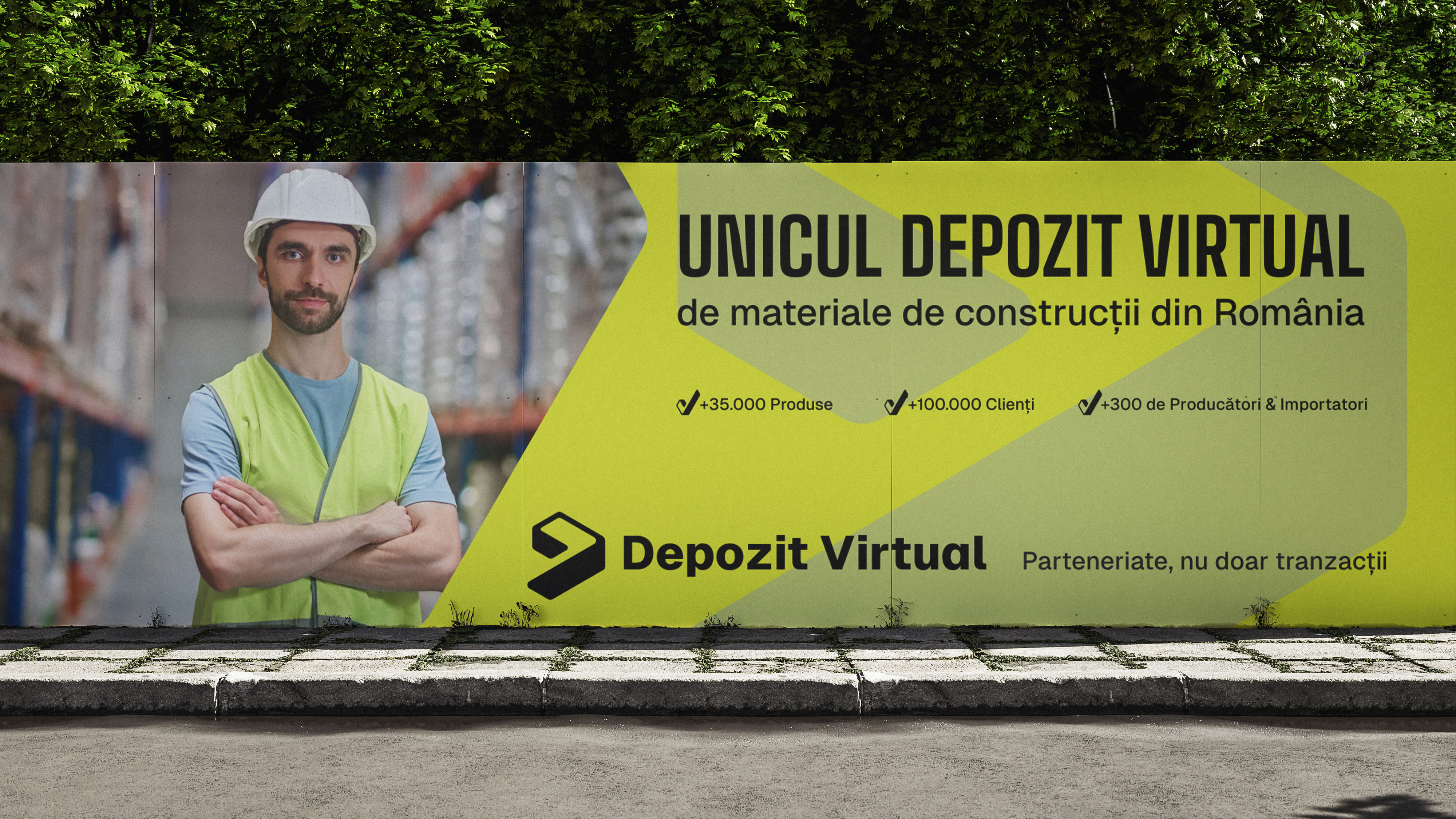 Piața materialelor de construcții este dominată de jucători mari, orientați fie spre retail, fie spre distribuție clasică, unde comunicarea se concentrează pe preț, stoc și promoții. În acest context, Depozit Virtual opera cu un model profund diferit: un sistem bazat pe consultanță, personalizare și negociere asistată, în care relația umană și etica comercială joacă un rol central. Provocarea a fost să construim o identitate care să nu fie confundată nici cu un magazin online, nici cu un distribuitor, nici cu o firmă de consultanță tradițională. Brandul trebuia să inspire seriozitate și stabilitate, dar și dinamism și deschidere, să comunice ideea de rețea, flux și infrastructură digitală, fără a deveni rece sau impersonal. În același timp, poziționarea ca „partener de achiziție” cerea o schimbare de paradigmă: de la tranzacții punctuale la relații construite pe termen lung, sintetizate în sloganul final „Parteneriate, nu tranzacții”.